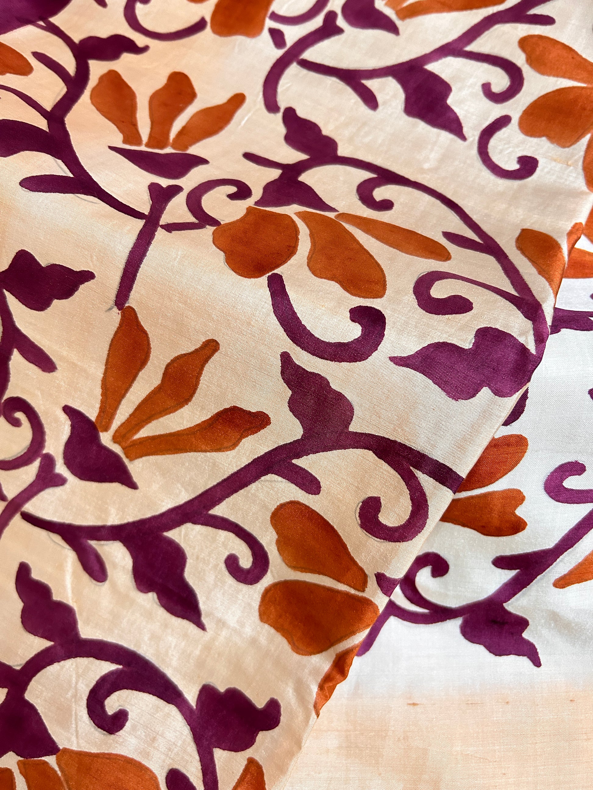 Hand painted Mulberry Silk: Motifs of the Alpona art