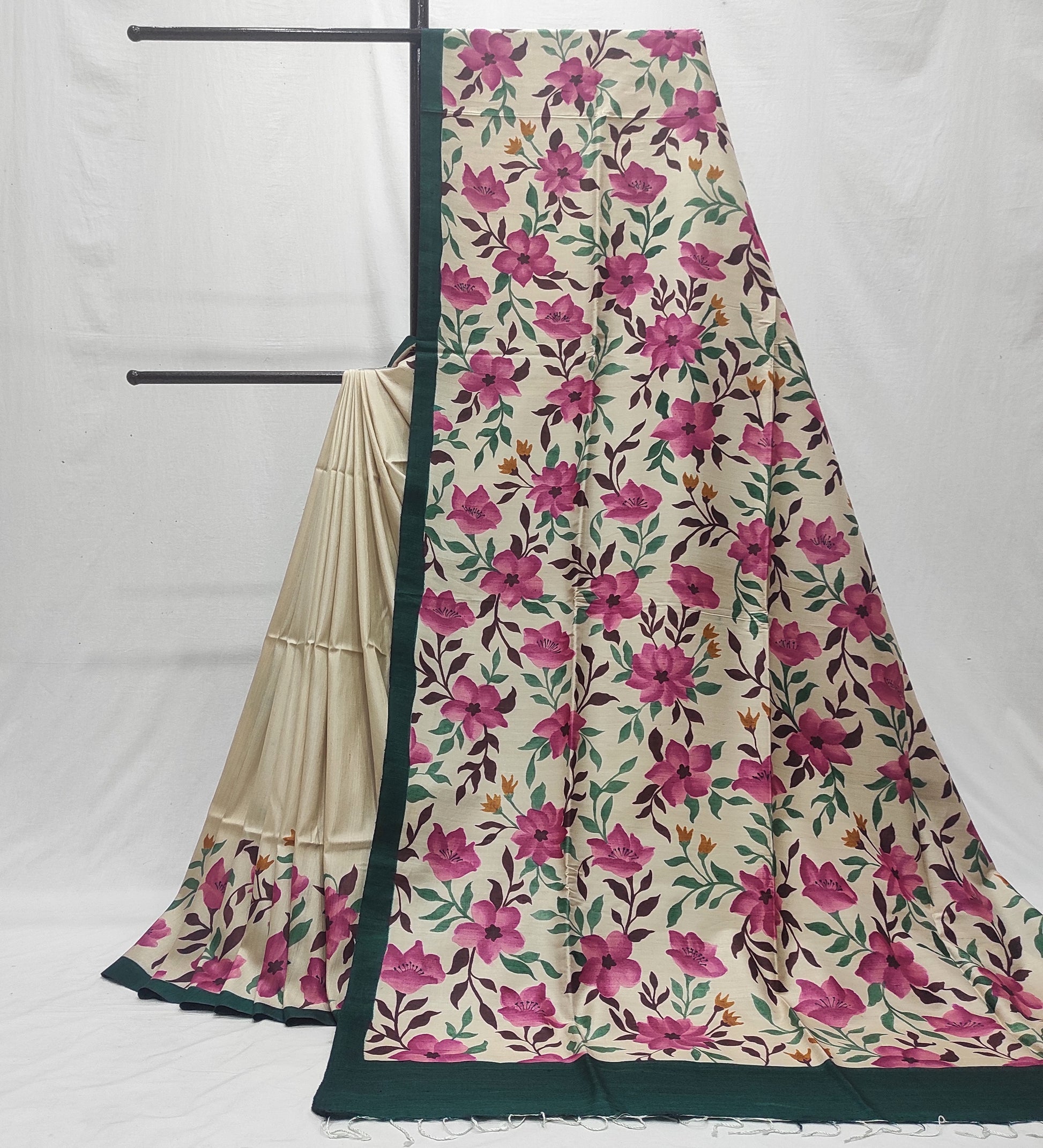 This saree is a breathtaking fusion of hand-painted artistry and intricate embroidery, both crafted with care by our skilled artisans. Our hand-painted Kantha sarees are a unique creation, often available in a single piece. In rare instances, we may create a second piece, but each saree will feature a different design combination, making each one truly exclusive.