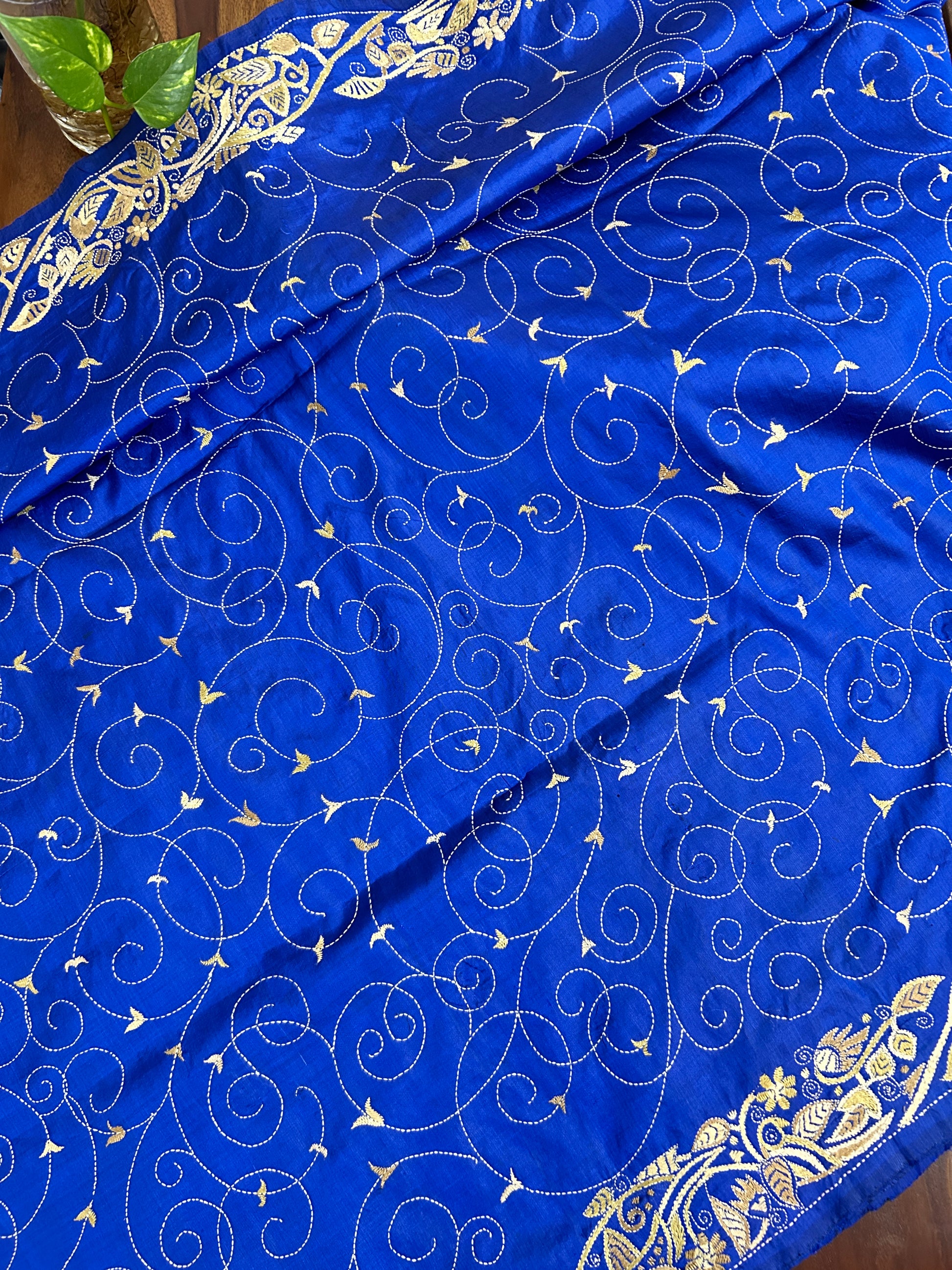 Blouse Piece: Yes, a 1-meter blouse piece in royal blue,with the Kantha embroidery border.