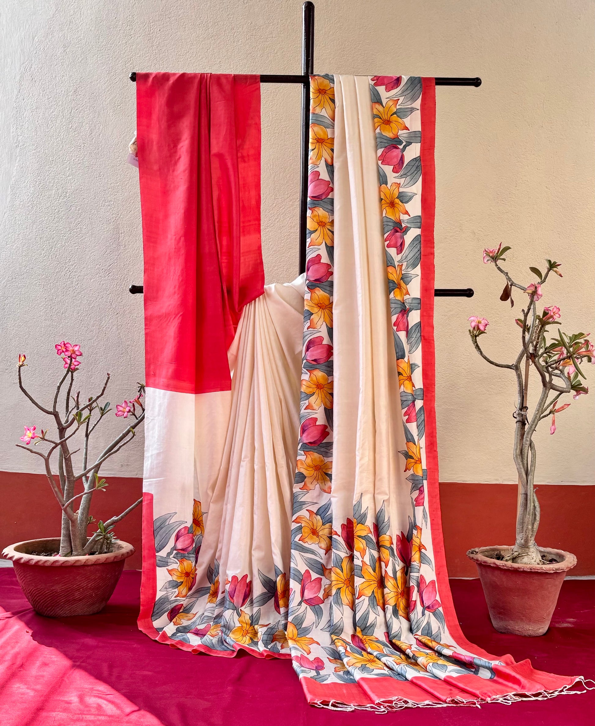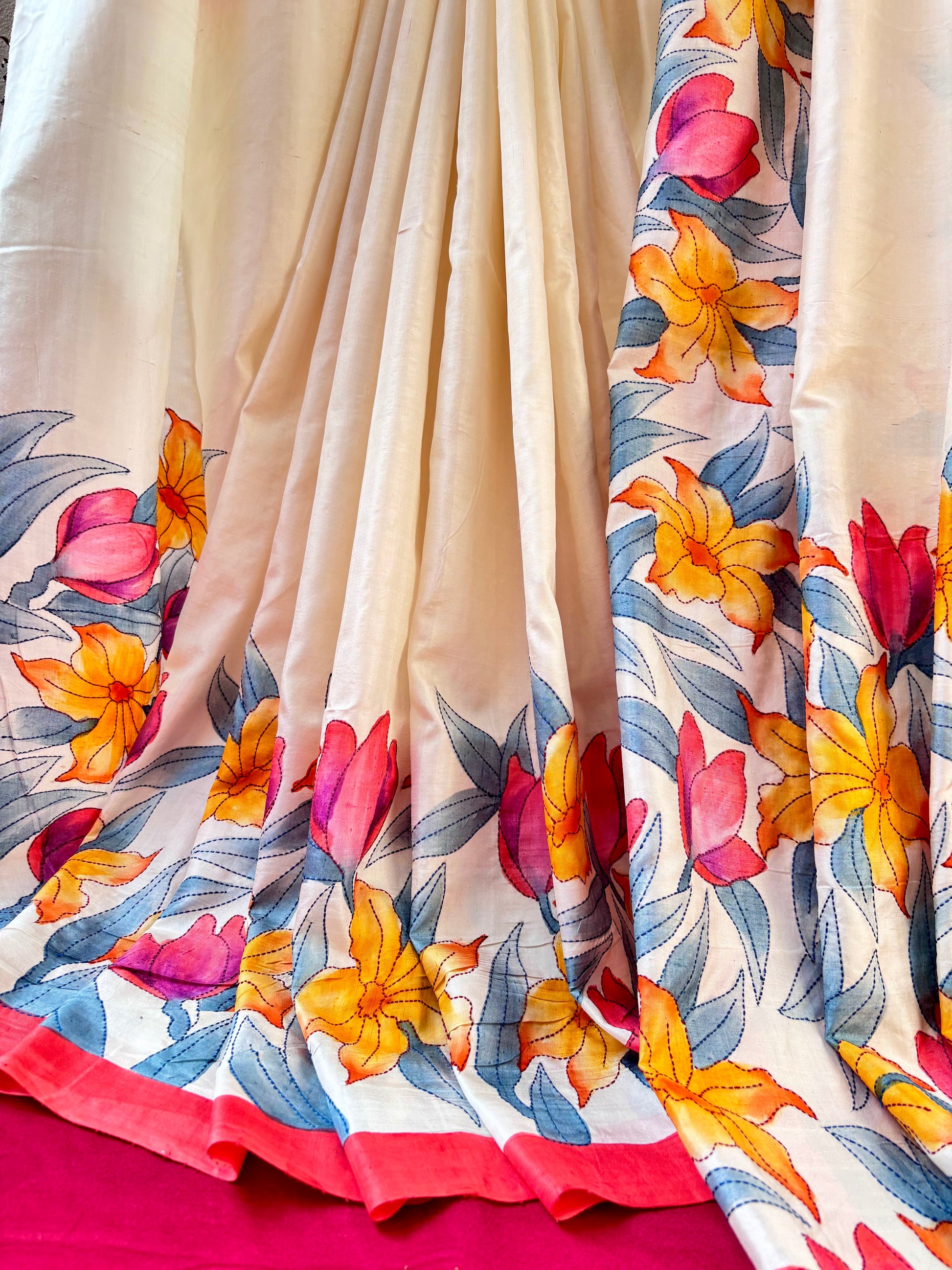 Handcrafted Saree: A Fusion of Painting and Hand Embroidery