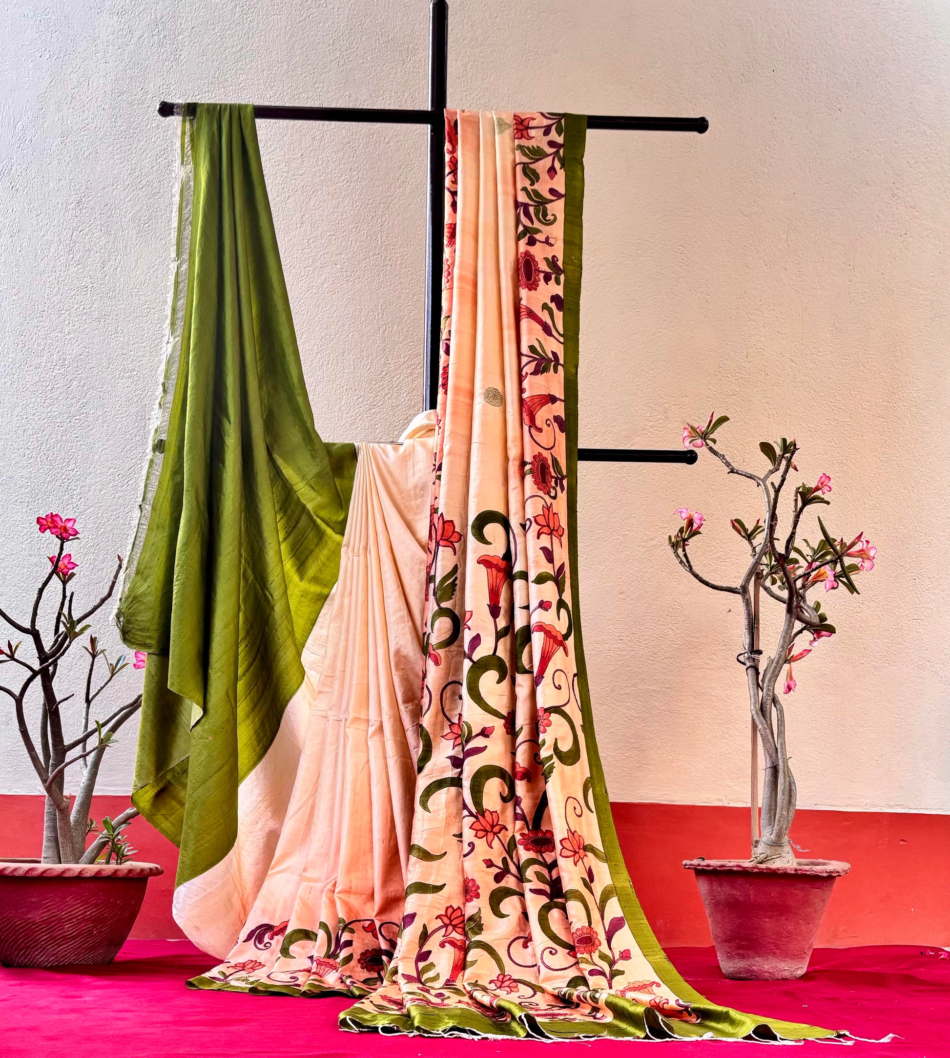 Handcrafted Saree: A Fusion of Painting and Hand Embroidery